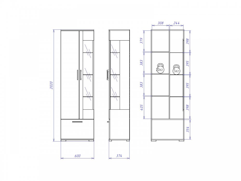 - Пенал Д-3л со стеклом левый Денвер Риббек серый
