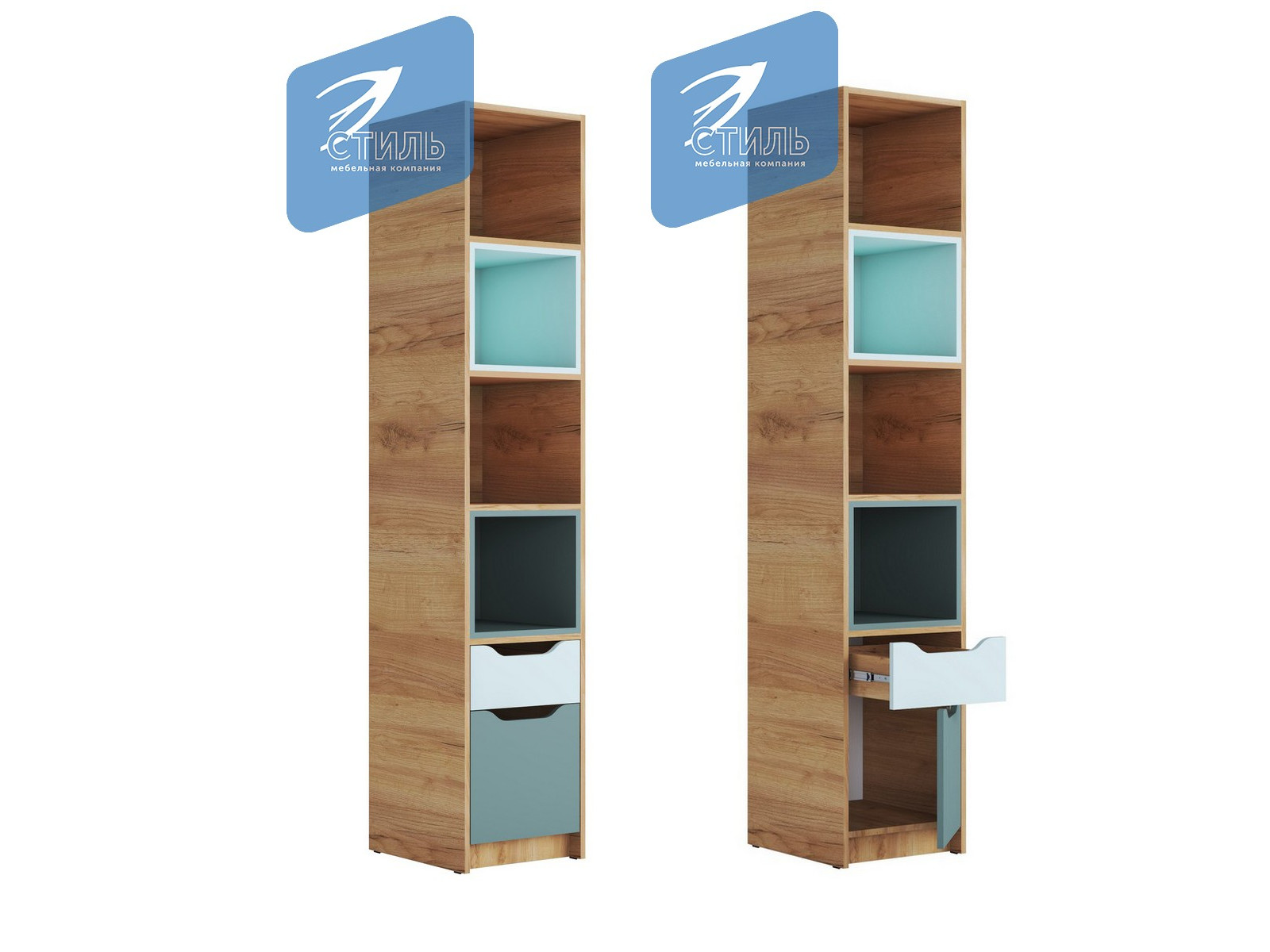 Цвет: корпус - дуб крафт золотой фасад лдсп - мята / сумеречный голубой